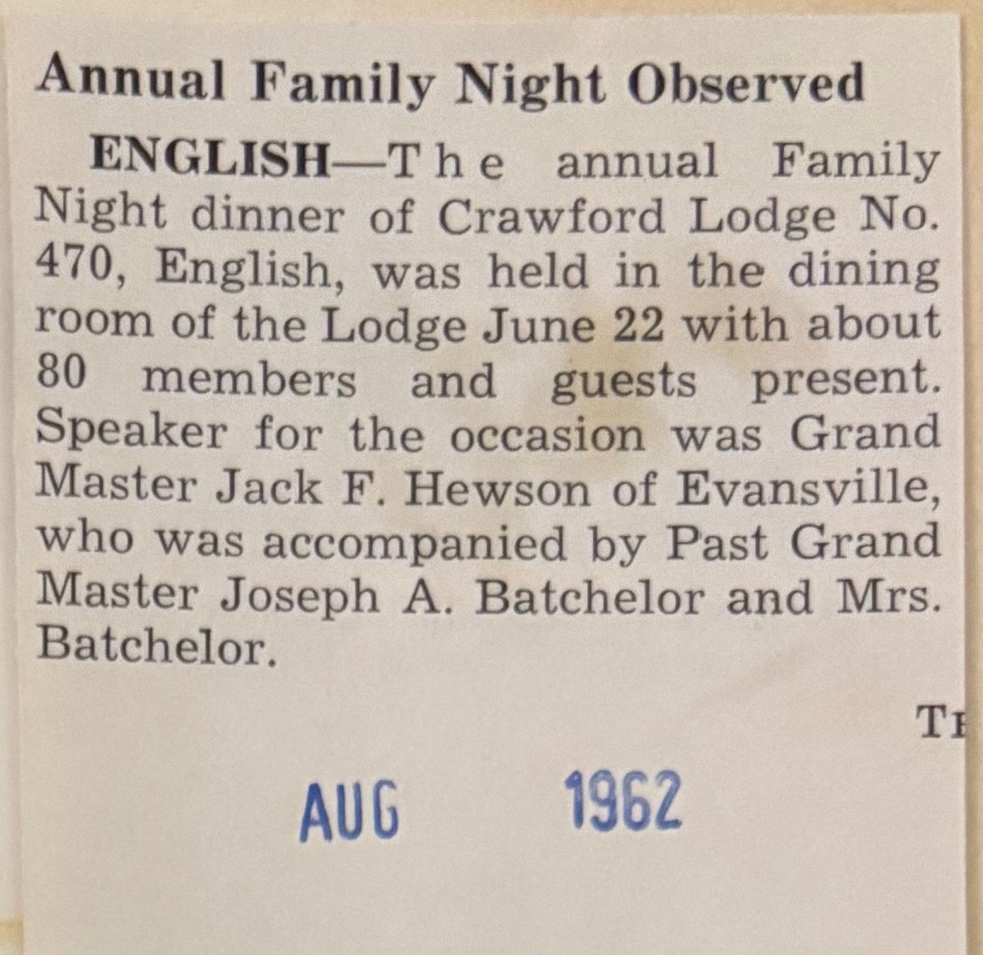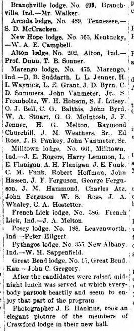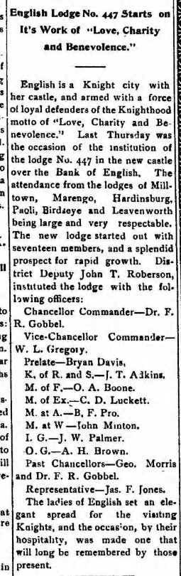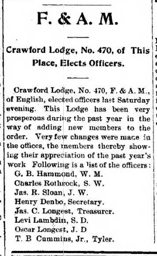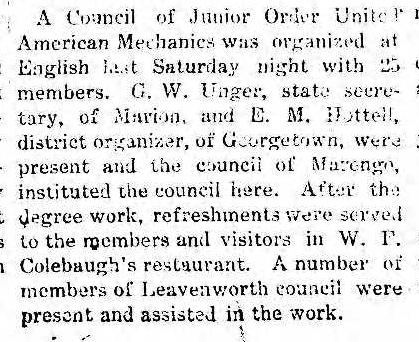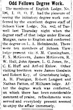 Here is a list of lodges that once existed in English, IN. Each lodge will be updated with various information as I obtain it.