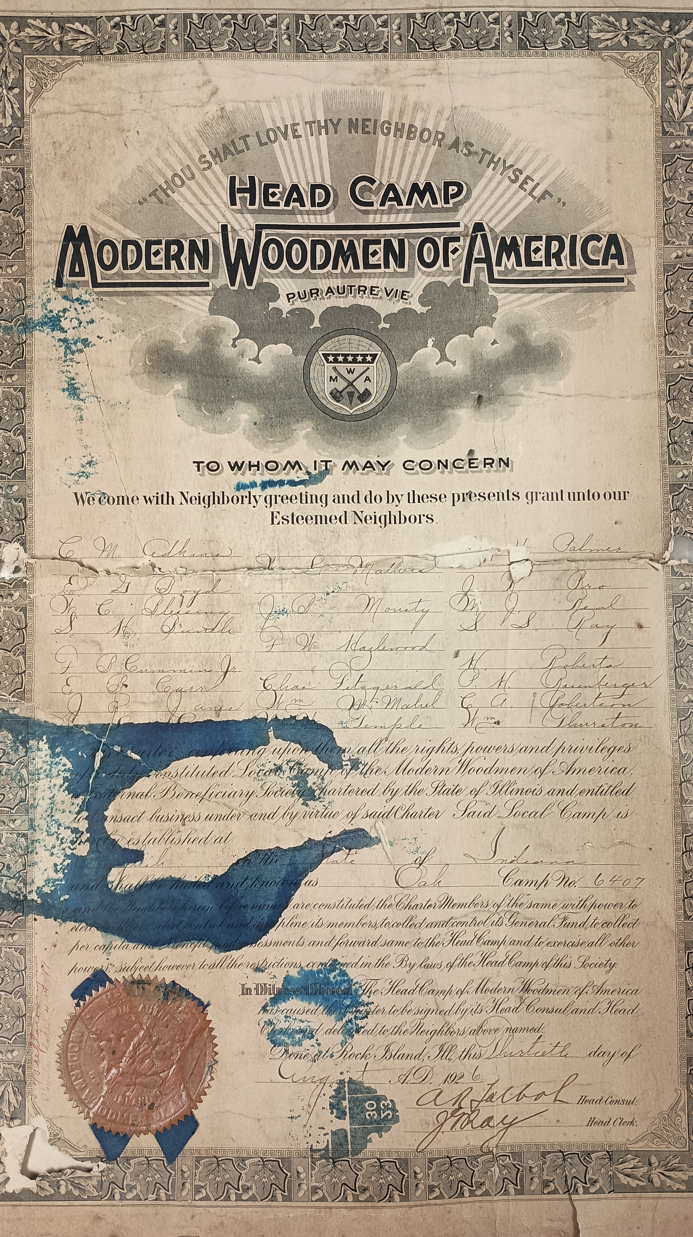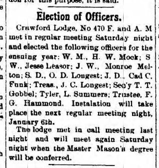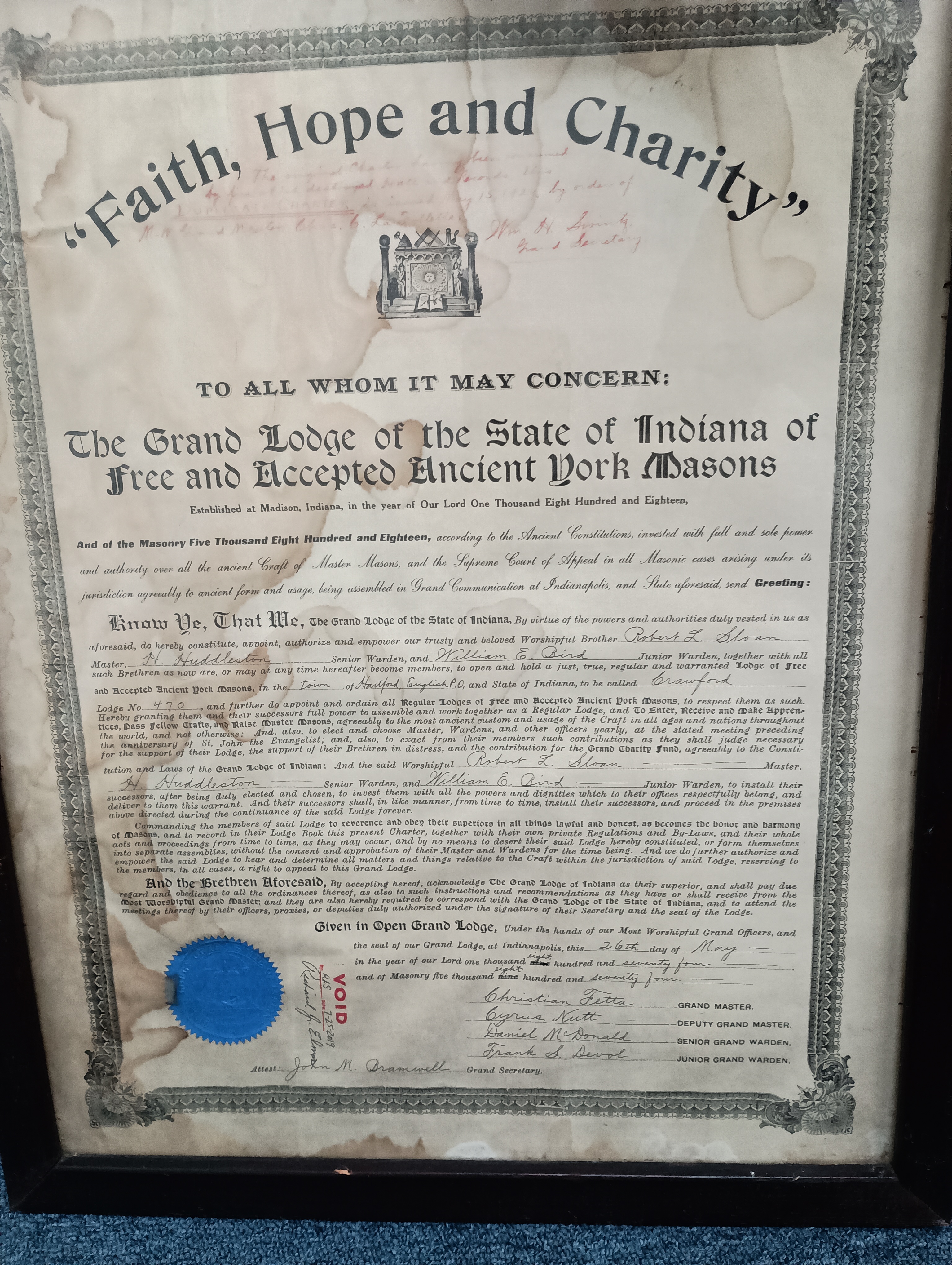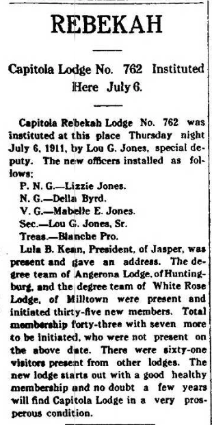 The charter date I have mentioned is not correct, per newspaper articles that are prior to that date that mention the lodge. I am not sure if they lost their charter and had a new one done, but there are some irregularities that need be researched more.