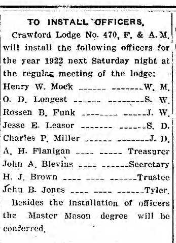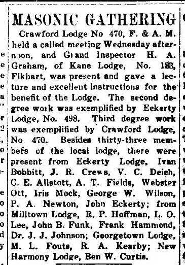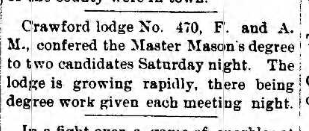 On July 31, 1911, there were 56 members of the lodge (“History of Crawford County” – Pleasant)