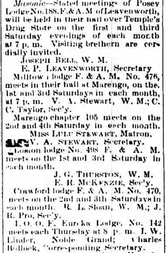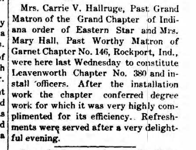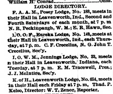 Here is a list of lodges that once existed in Leavenworth, IN. Each lodge will be updated with various information as I obtain it.