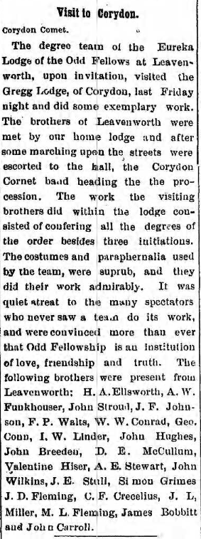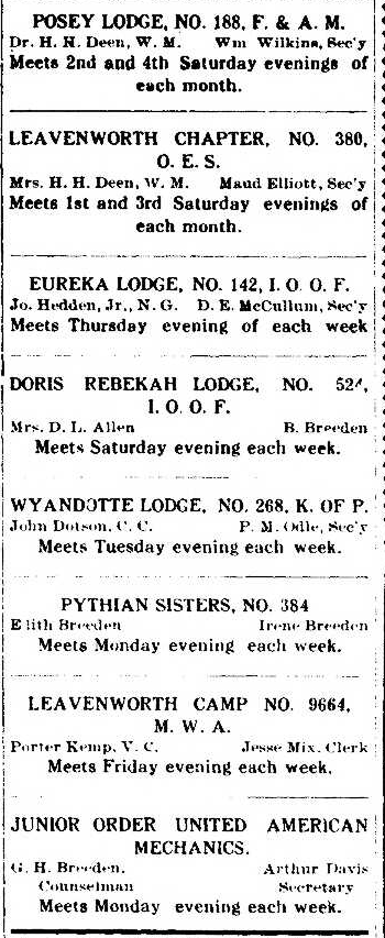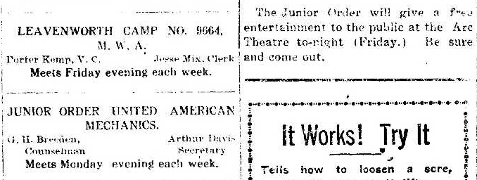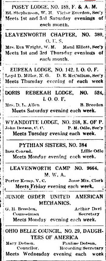 First organized at the Odd Fellows lodge in Leavenworth.