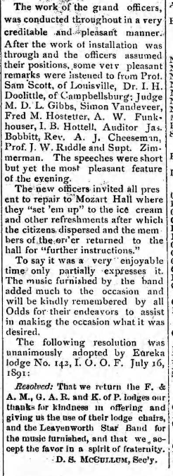 Leavenworth and a charter member of the Order of the