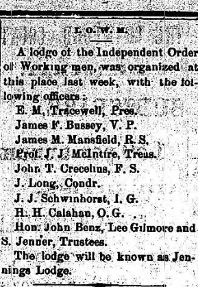Independent Order of Working Men (Jennings) Lodge #33