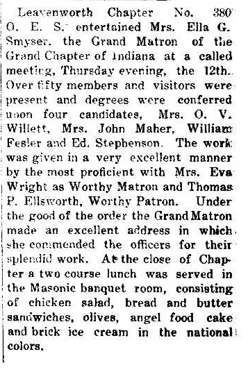 Ellsworth was Worthy Patron and his wife was Worthy