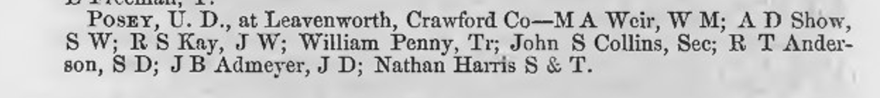 Upon closure, the lodge merged with Pisgah Lodge #32 in Corydon, IN (Harrison county).