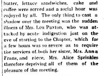 Eastern Star and helped organize the chapter in 1912.