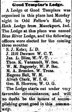 Independent Order of the Good Templars Lodge # (Blue River Lodge)