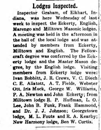Here is a list of lodges that once existed in Marengo, IN. Each lodge will be updated with various information as I obtain it.