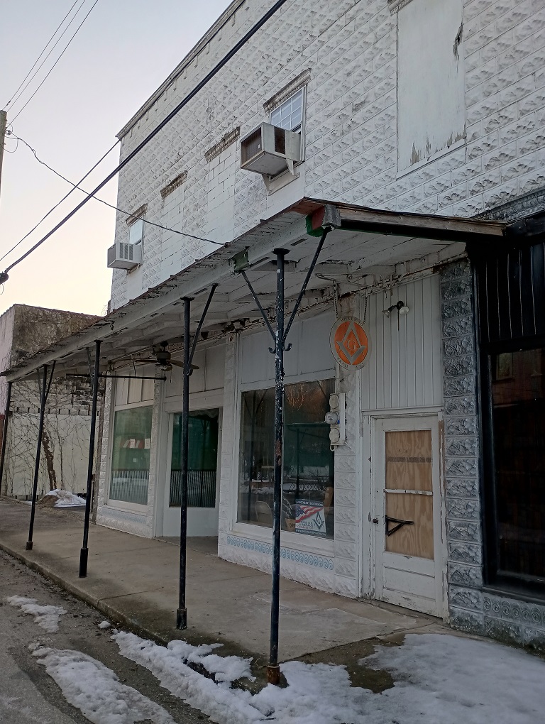 On December 24, 1947, a fire started in a near by building, which ignited the window casements of the Masonic Hall, located above the F.E. Denton Drug Store. This caused some damage to the hall and contents. (*Twentieth Century History of Crawford County – H.O. “Whitey” Jones)