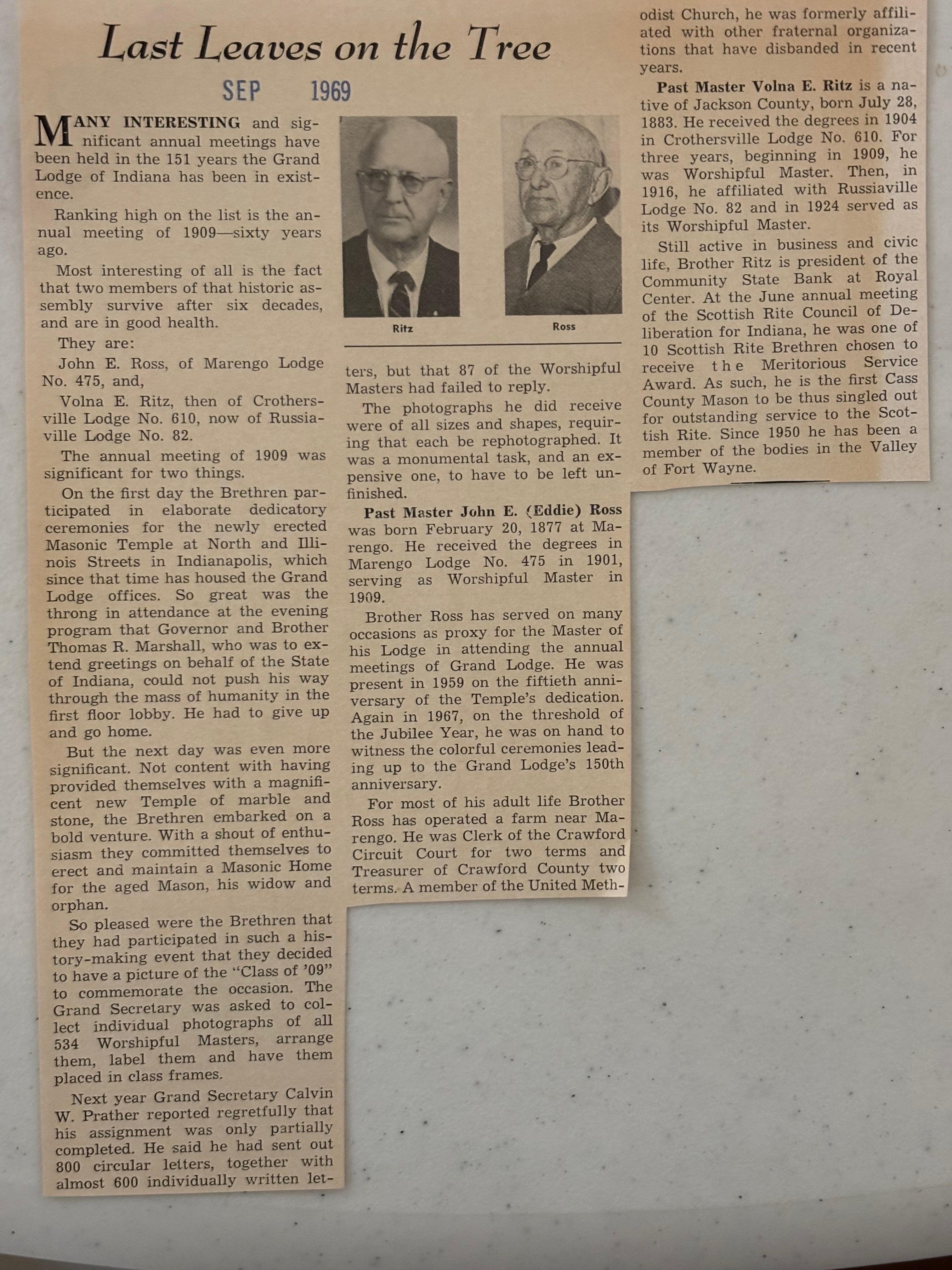 The lodge was the most prominent social club featured in the 1939 Centennial parade.*