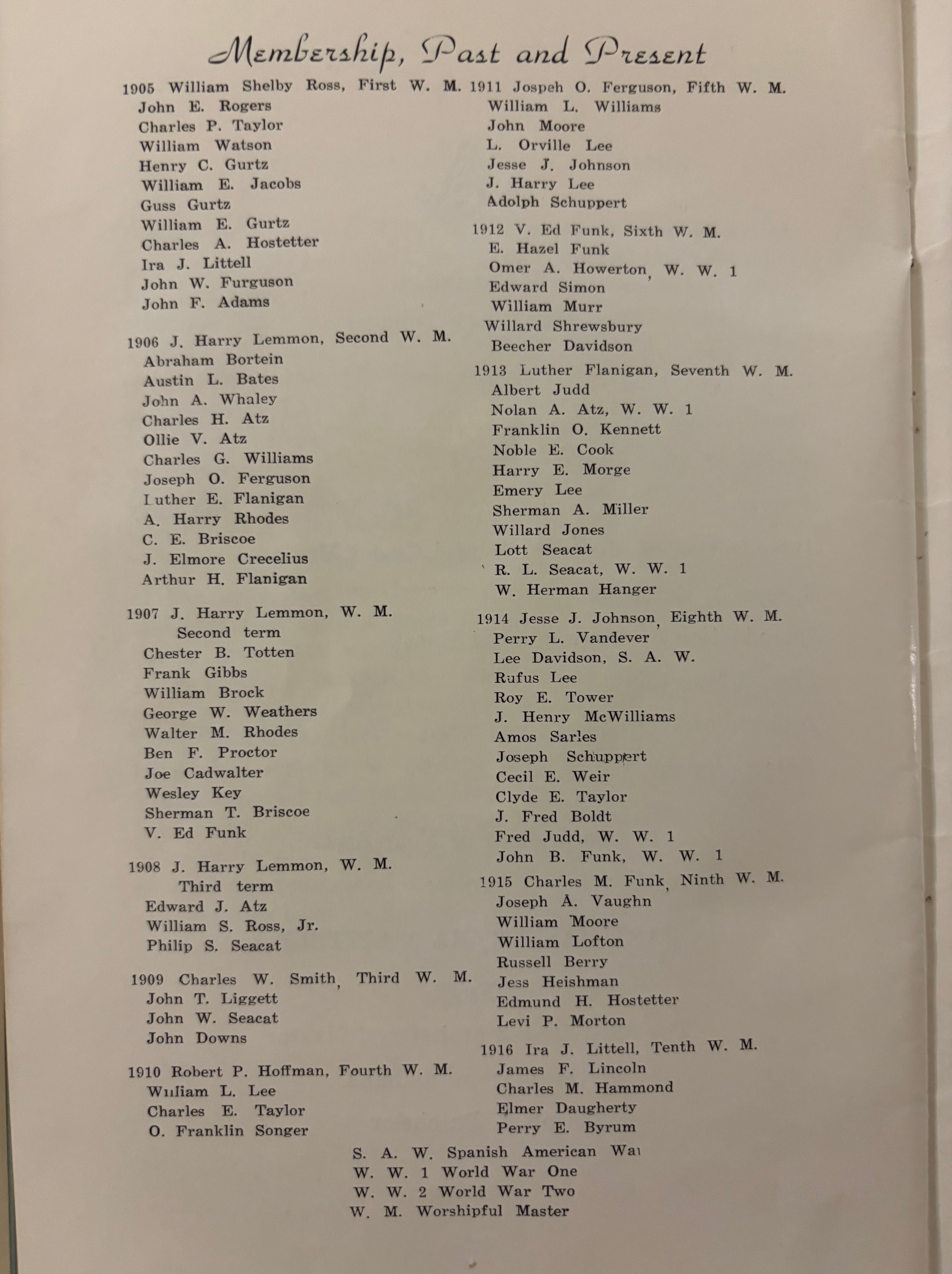 Originally met in a building on Main Street, above Dr. Johnson’s office. In 1933, the lodge moved to it’s new headquarters above the newly constructed Watson’s Hardware store.